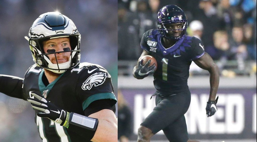 Reagor is exactly what this Eagles offense needs. He can be moved all over the offensive formation, in the slot, in the backfield, and on the outisde. He’s comfortable working through traffic and is best when used in space which is where the Eagles coaches excel when developing passing sets. Specifically in bunch formations where they can create mis-matches and confusion among defenders. An area where I think this pairing (Reagor-Wentz) will specifically excel is in or around the redzone. Looking at the numbers (per Pro Football Reference), in 2019 inside of the 20 yard line, Wentz completed 59.42% of his passes with 19 TDs and 0 interceptions and in his career at TCU, Jalen Reagor dropped zero passes in the redzone. At 5’10 this may be an astonishing feat to some however, when you take into account the fact that Reagor has a 42 inch vertical this becomes more understandable.