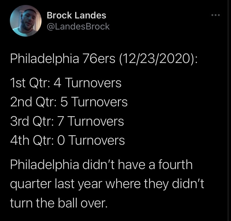 For the first time since the 2018-19 season, the Sixers didn’t commit one turnover in the 4th quarter. Execution was almost flawless and it was a sight to see for Philly fans.