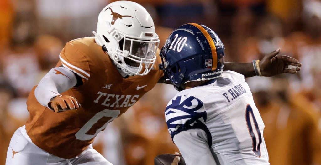 Playing in nine games, starting five that season — he made his first start again the rival Oklahoma Sooners at defensive tackle and moved to his formal home along the edge for the remaining four games.