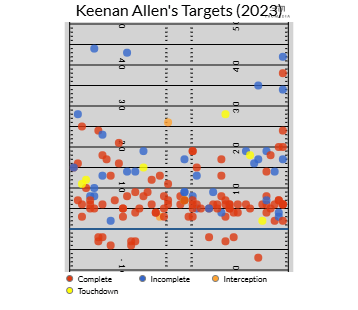 Kellen Moore’s offense in 2023 with the Chargers and star wide receiver Keenan Allen saw Allen receive an extremely high volume of targets over the middle of the field.
