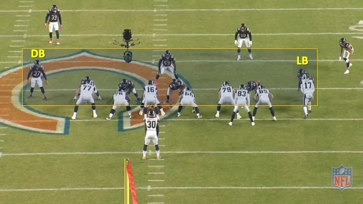 In order to combat this, instead of playing the same nickel fronts that had gotten them torched in the 2 weeks prior, Fangio decided to dial the clock back to 2018 when he faced Shanahan-Kubiak disciple Sean McVay and the Rams high powered zone running attack.